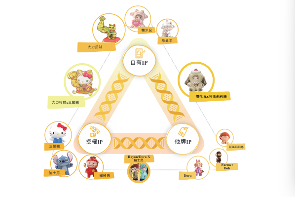 区别于泡泡玛特的自有生态,在IP布局上,TOP TOY走的是“自有+授权+他牌”的集合路子。2024年度及今年上半年,TOP TOY自有IP开发的产品分别实现收入680万元及610万元。由授权IP开发的产品则分别实现收入8.893亿和6.153亿元。
