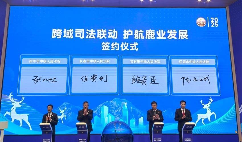 在吉林省高级人民法院的统筹部署下,长春市中级人民法院、吉林市中级人民法院、四平市中级人民法院、辽源市中级人民法院四家法院联合签署《关于构建吉林省梅花鹿产业跨区域司法保护协作框架协议》。长春市委常委、政法委书记周贺出席启动(签约)仪式。